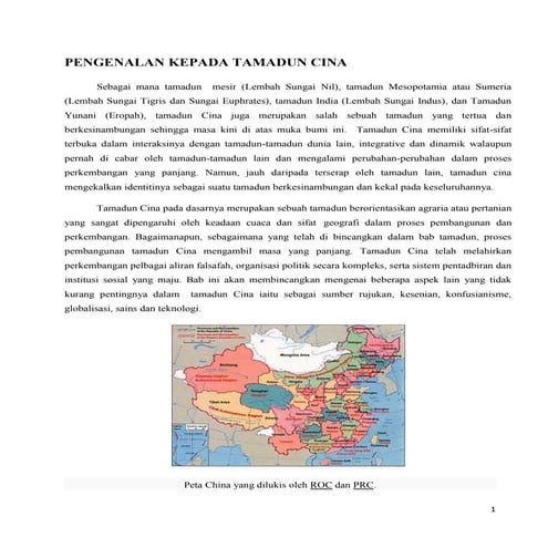 Titas Tamadun Cina Tugasan 1 Pengenalan Tamadun China Terletak Di Lembah Hwang Ho Dan Merupakan Studocu