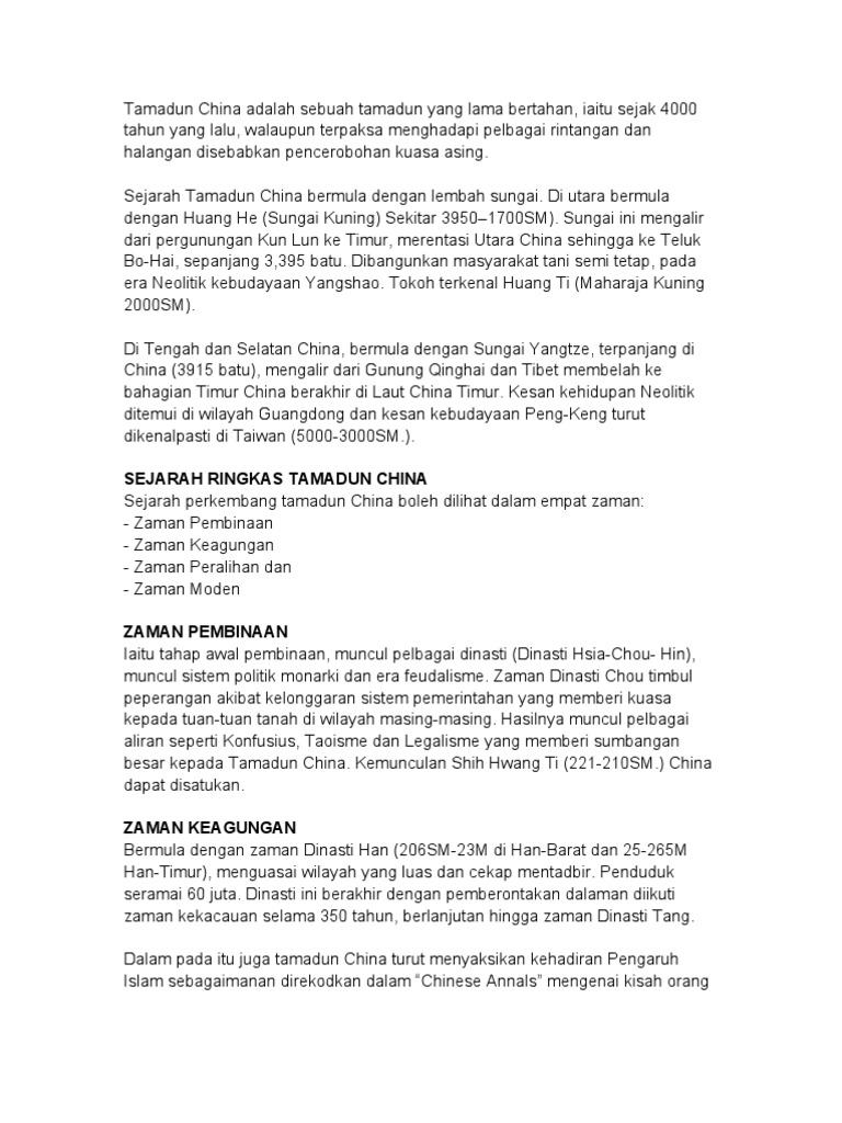 Sifat keterbukaannya dalam berinteraksi dengan tamadun- tamadun lain integratif dan dinamik menyebabkanya menjadi lebih. LATAR BELAKANG TAMADUN CHINA merupakan salah satu tamadun yang tertua di muka bumi kaya dengan penciptaan dan penemuan sains sumbangan kepada perkembangan sains dan teknologi dunia. Melantik mereka yang mempunyai latar belakang peperiksaan awam kerajaan.